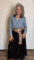 Elevate your wardrobe with the Tencel Denim Ruched Shirt, featuring a stylish ruched snap front that adds a flattering touch to your silhouette. Designed with a classic collar and snap cuffs on long sleeves, this blouse combines effortless elegance with easy wearability. Crafted from soft, breathable Tencel denim, it ensures comfort throughout your day while making a chic statement. Perfect for both casual outings and polished looks, this shirt is a versatile addition that enhances your style with minimal effort.