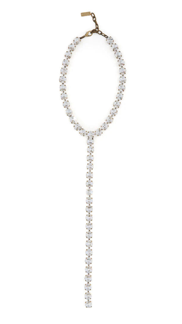 Add some glam to your look with this gorgeous L.A. Necklace! With its stunning crystal accents, it's perfect for a dazzling night out. Crafted in Canada with brass base metal and antique silver plating, it is sure to be a statement piece in your collection. At 15" with a 5" drop, you'll be turning heads all night long!