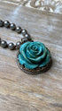 Indulge in timeless elegance with our Carved Flower Necklace. This necklace features a beautifully carved rose approximately 1 1/2 inch in diameter on a 20 inch ball chain. Elevate any outfit with this unique accessory, a must-have for any jewelry collection.