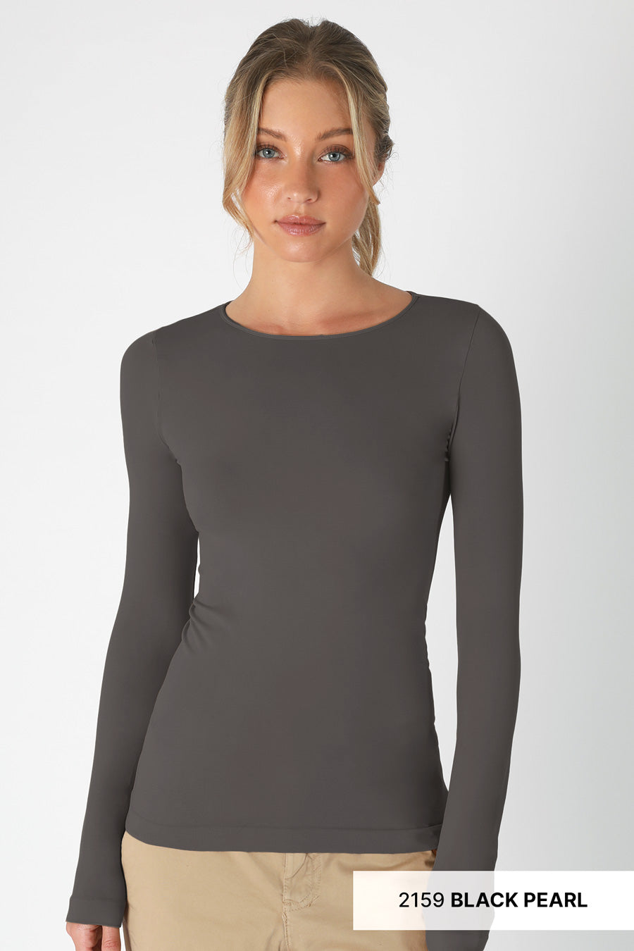 Indulge in luxury with our Seamless Long Sleeve Crew Neck Top. Crafted with a plain jersey material, this top provides comfort and style in one. With its seamless design, you'll experience ultimate comfort and a flawless fit. Elevate your wardrobe with this must-have piece.