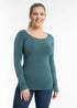 Indulge in luxury with our Long Sleeve Round Neck Top. This solid staple piece boasts seamless construction and 4-way stretch technology, allowing for a flawless fit that stretches more than twice its size. Reversible for two neckline options. Elevate your wardrobe with this elegant and versatile top.