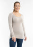 Indulge in luxury with our Long Sleeve Round Neck Top. This solid staple piece boasts seamless construction and 4-way stretch technology, allowing for a flawless fit that stretches more than twice its size. Reversible for two neckline options. Elevate your wardrobe with this elegant and versatile top.