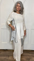 Introducing our Mixed Fabric Asymmetric Top, featuring a mix of printed fabrics, round neckline, and 3/4 sleeves. Its high slits in the front, back, and sides add a touch of sophistication and versatility. Perfectly paired with our Lenin Pants or Mixed Fabric Wide Leg Pants, this top will elevate your wardrobe with its unique and luxurious style.