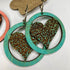 These very lightweight earrings really make a big impact.  The outside edge of the circle measures 2 inches in diameter.   The hoops holding the encircled heart focal is closed with a spring.  The total drop from top of hoop to bottom of circle is 3".